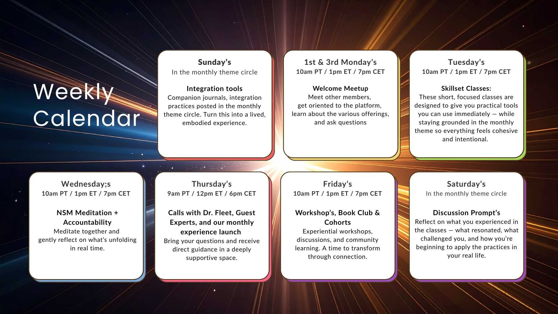 Our live Welcome Gatherings are a beautiful way to connect, orient yourself, and feel the heartbeat of the community.Â